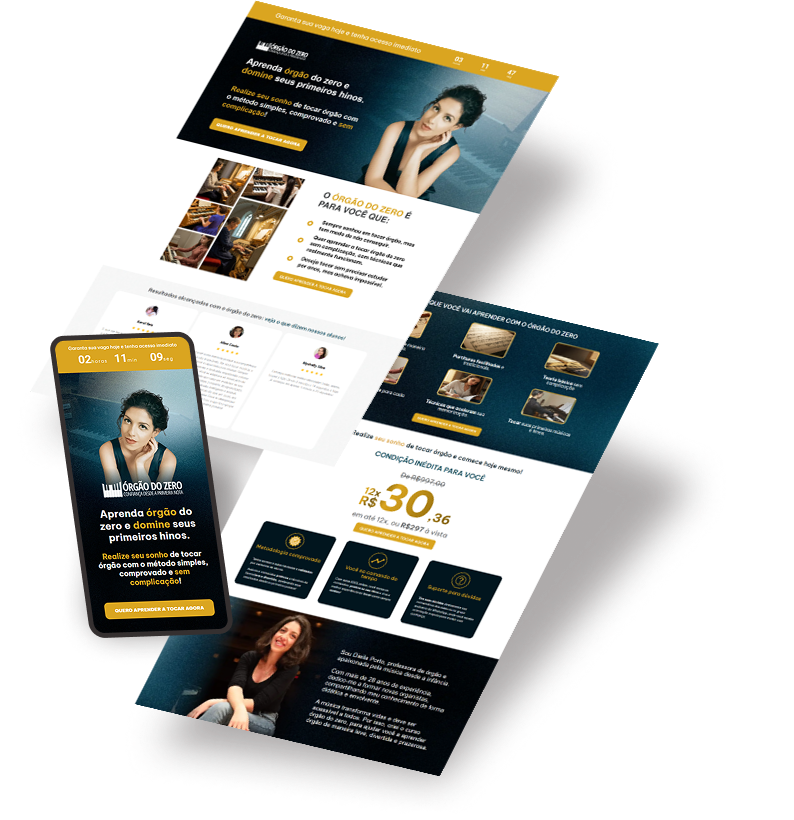 Crio sua landing page ou sites com um design moderno e cativante, pensado estrategicamente para atrair novos clientes e abrir portas para grandes oportunidades.